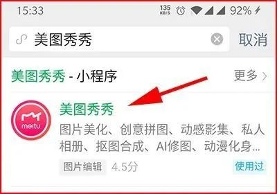 輸入“美圖秀秀” 點擊下面的小程序