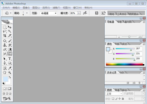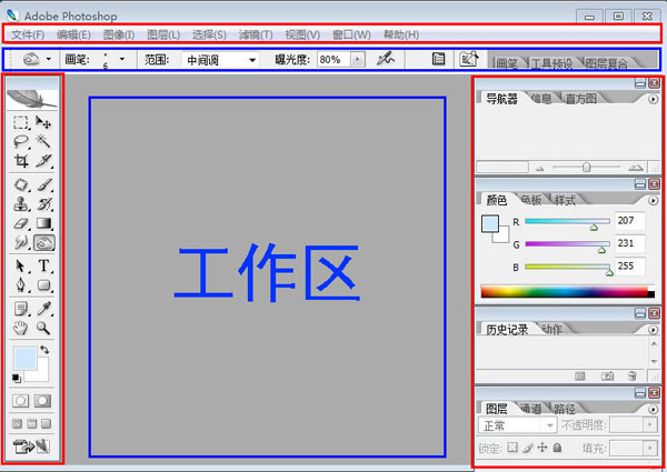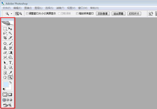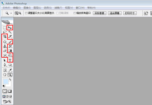 左邊是工具欄,各種工具都放在這個區域,老照片修復中經常要使用的工具就在這里里面。