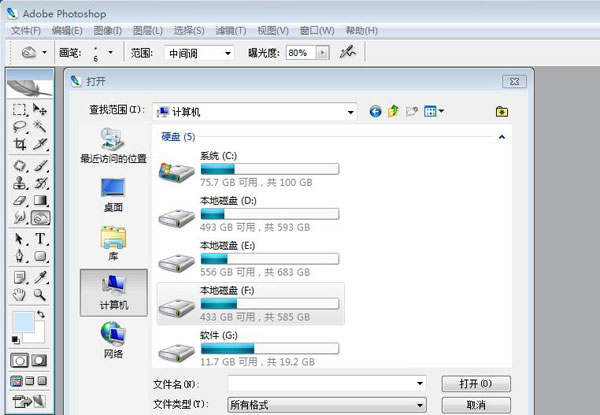 1.雙擊軟件空白處,彈出對話框選擇照片打開。