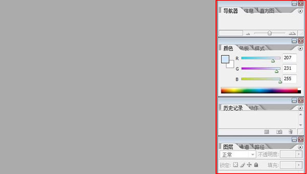 右邊信息面板主要是圖片信息和工作記錄,不需要去設置或者處理它,以后的內容會慢慢講。