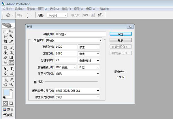 設置完成,點擊確定,得到一張空白的數碼圖片文件,就可以在空白的圖片里面任意涂畫,制作想要的畫面效果。