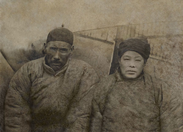 我們以一張兩個老人的破損照片來介紹,可以在以后類似的照片修復中有一定的參考和規避會出現的問題,原始照片為兩位老人半身合影,年代長,破損嚴重,下圖:
