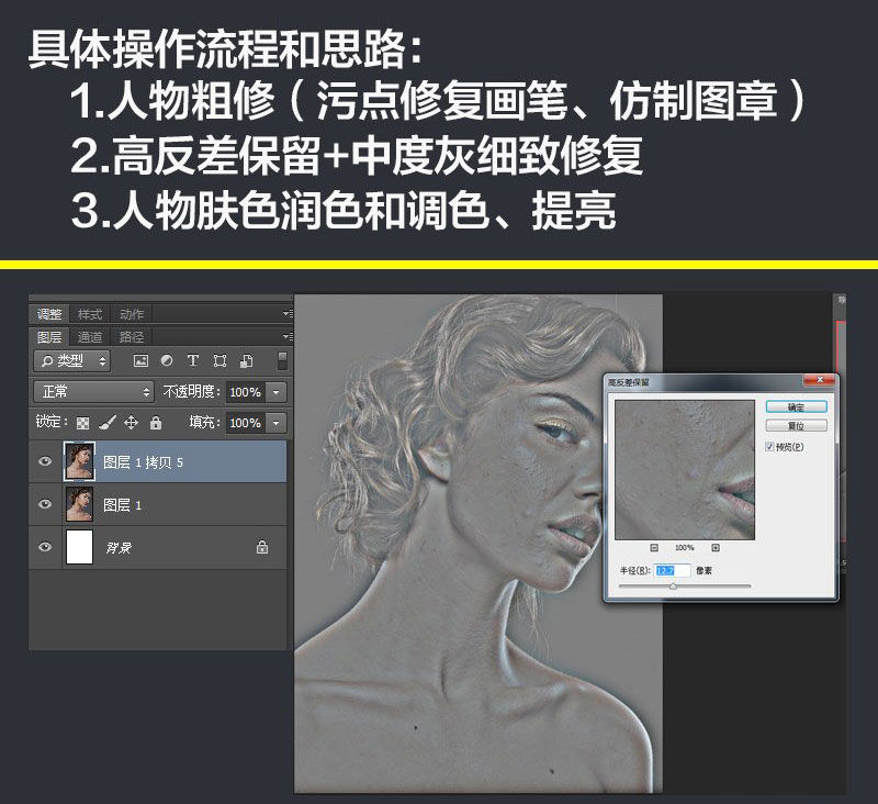 PS5分鐘速成人物磨皮精修方法:高反差保留+中性灰磨皮+后期人物調(diào)色