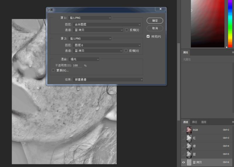 圖像-計(jì)算-參數(shù)在圖片中有展示-確定-重復(fù)三次(把臉上的斑與臉顏色差距拉大)