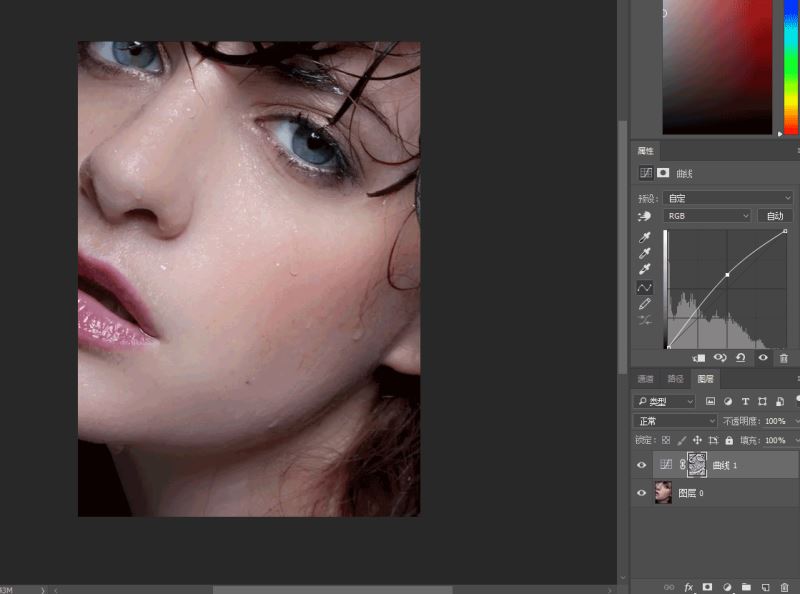 同時(shí)按住ctrl鼠標(biāo)左鍵點(diǎn)擊alpha3的圖層-獲得了一個(gè)選區(qū)-點(diǎn)擊圖層返回到圖層時(shí)候的狀態(tài)-按住ctrl+i鍵反向選取(選取的是祛斑的區(qū)域)-點(diǎn)擊下部最中間的小控件選擇曲線調(diào)整成如圖片上的參數(shù),當(dāng)然也可以自己隨意發(fā)揮。