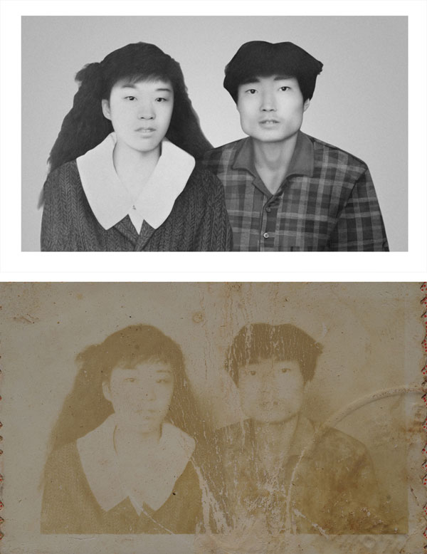簡單說,就是把損壞的舊照片掃描或者翻拍,轉換成電子版照片,再在電腦軟件里面通過修補、繪畫、替換等技法把破損、褪色的舊照片完整修復的一個過程。