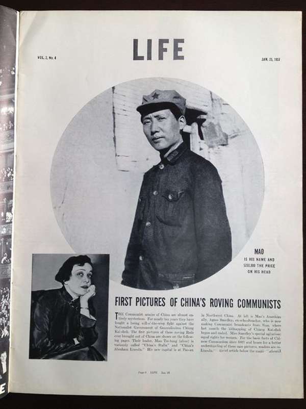 但毛澤東只有一頂洗得發(fā)白的舊軍帽,且帽檐已經(jīng)軟軟地耷拉下來,這樣的帽子照相顯然不適合。身邊的工作人員都沒有合適的。為難之際,斯諾順手把自己頭上的新軍帽摘下遞給毛澤東,戴上正合適。斯諾立即舉起了照相機(jī),把毛澤東的光輝形象拍了下來。隨后撰寫《紅星照耀中國》由英國倫敦戈蘭茨公司于1937年10月首次出版,這也是當(dāng)時最早最詳盡的報(bào)道,向世人宣傳講述了當(dāng)時的情況。
