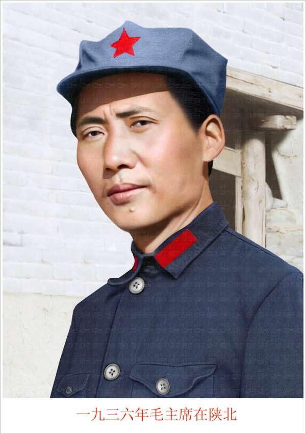 這張照片的原型由美國記者斯諾拍攝于1936年,并在1937年撰寫《紅星照耀中國》刊發(fā),第一次向世界展示了毛澤東主席的形象,具有非常的意義。