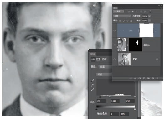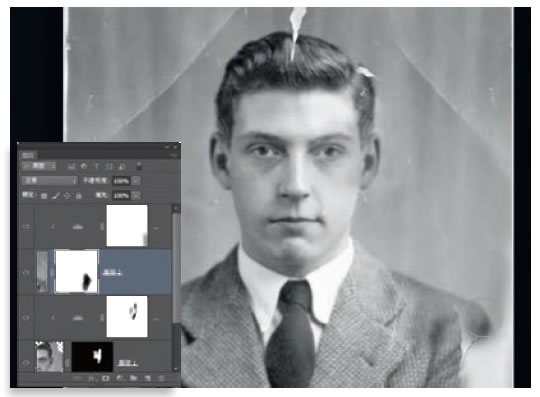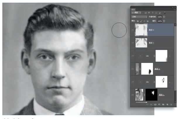 接下來的主要工作是改善畫面細節,移除畫面中的所有灰塵與劃痕。這項工作涉及到不同濾鏡、修復工具與克隆工具的綜合應用。最后,我們還將通過手工上色讓照片變得更加精彩。