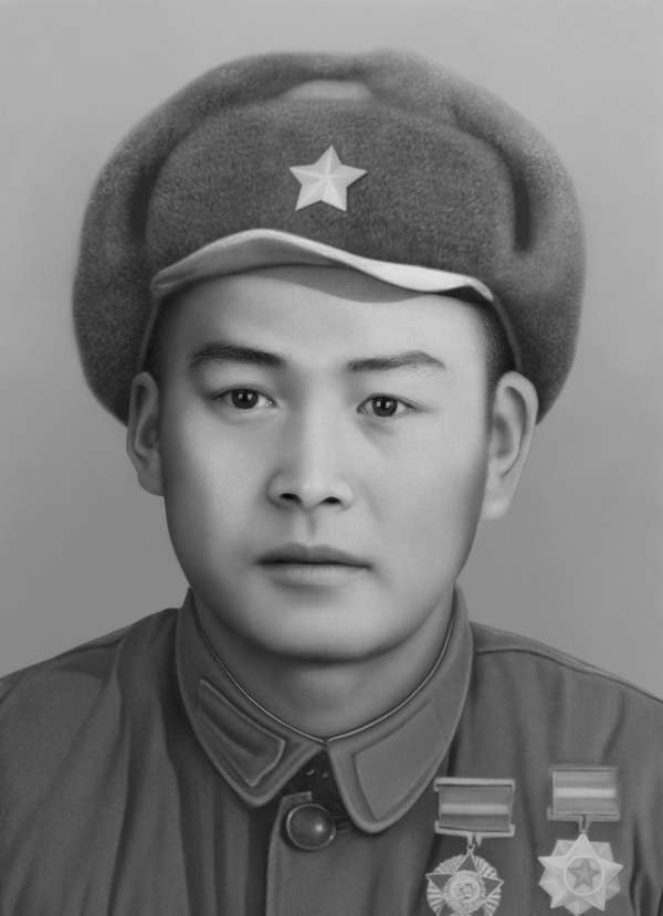 通過素材輔助、繪制、優(yōu)化調(diào)整,完成這個模糊照片修復(fù),上圖。整體畫面清晰自然,保留原始照片特征,衣服部分輕微改動使整體畫面協(xié)調(diào),添加了領(lǐng)章,胸章畫清晰(右胸章畫的痕跡有點(diǎn)明顯了),畫質(zhì)、清晰度都有了質(zhì)的提高,最終效果能滿足放大16寸原始照片的要求,而且放大后細(xì)節(jié)更好。